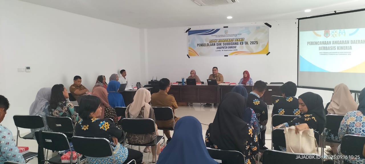 Banggaikece.id – Perwakilan Badan Kependudukan dan Keluarga Berencana Nasional (BKKBN) Provinsi Sulawesi Tengah menggelar Rapat Koordinasi (Rakor) Teknis Pengelolaan Dana Alokasi Khusus (DAK) Sub Bidang Keluarga Berencana (KB), Selasa (16/9/2025), bertempat di ruang pertemuan Dinas Perpustakaan dan Kearsipan Daerah Kabupaten Banggai.
