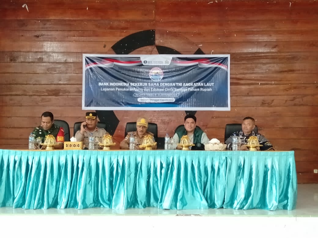 Banggaikece.id – Bank Indonesia bekerja sama dengan TNI Angkatan Laut menggelar layanan penukaran uang sekaligus edukasi Cinta Bangga Paham Rupiah (CBP Rupiah) di Gedung BPU Kecamatan Tinangkung, Kabupaten Banggai Kepulauan, Senin (22/9/2025).