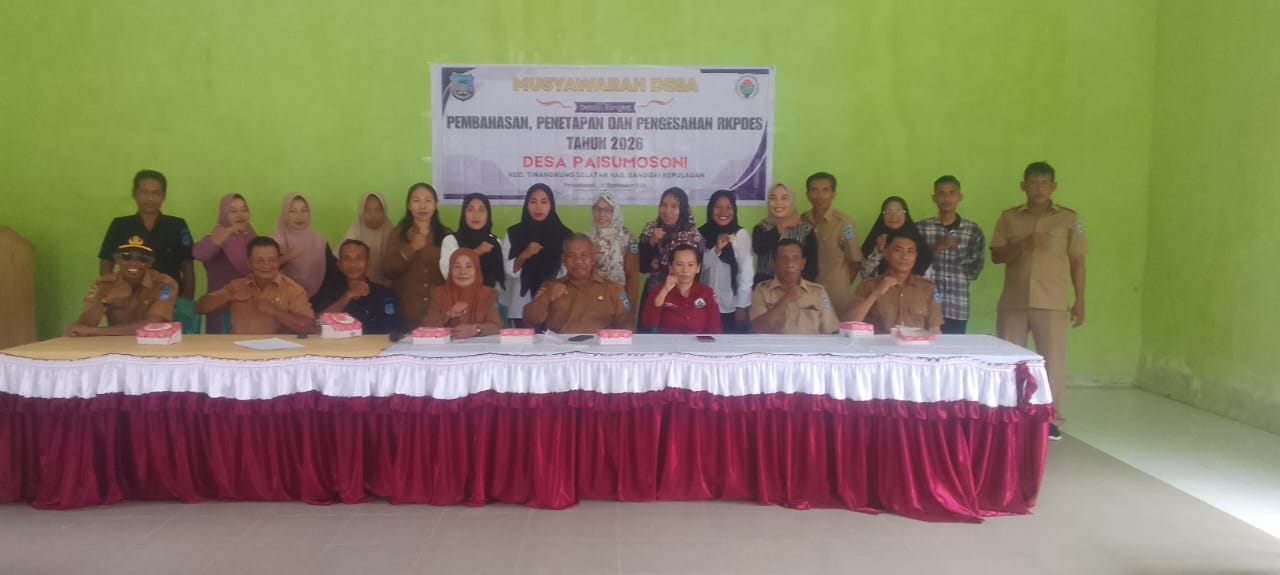 Banggaikece.id – Pemerintah Desa Paisumosoni, Kecamatan Tinangkung Selatan, Kabupaten Banggai Kepulauan, sukses menggelar Musyawarah Desa (Musdes) untuk penetapan Anggaran Pendapatan dan Belanja Desa (APBDes) Tahun 2026. Kegiatan ini menjadi salah satu tahapan penting dalam perencanaan pembangunan desa.