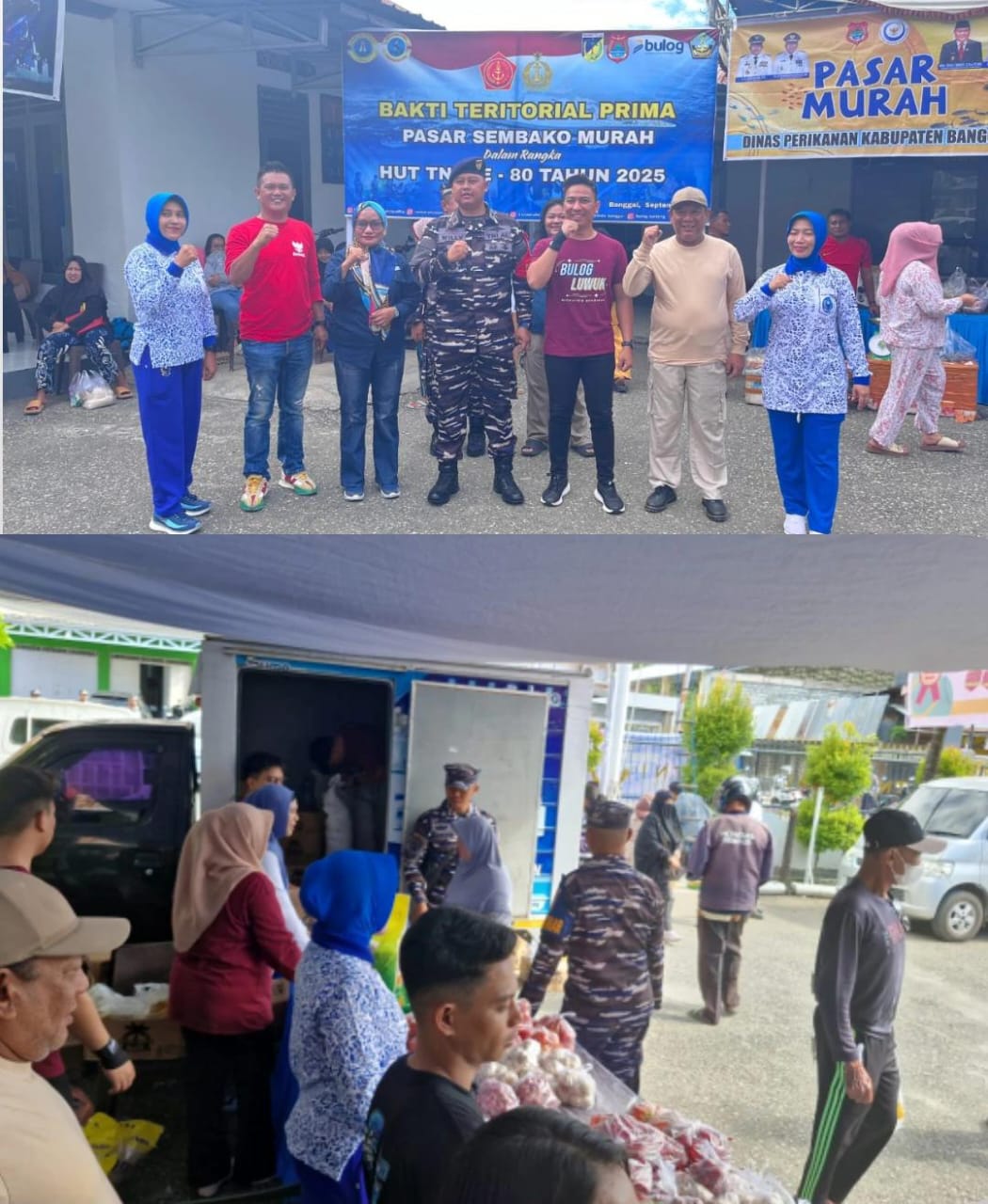 Banggaikece.id — Dalam rangka memperingati HUT TNI ke-80 tahun 2025 sekaligus mendukung program Bakti Teritorial Prima TNI, Pos TNI AL Luwuk (Posal Luwuk) di bawah jajaran Pangkalan TNI AL (Lanal) Palu menggelar Pasar Sembako Murah bagi masyarakat sekitar.