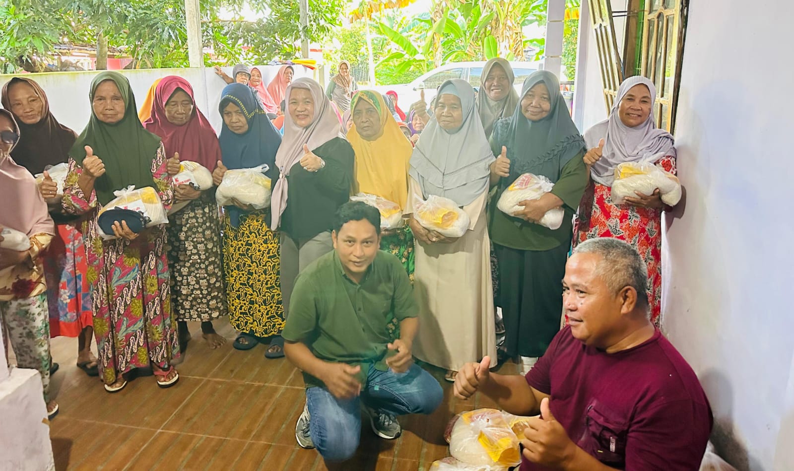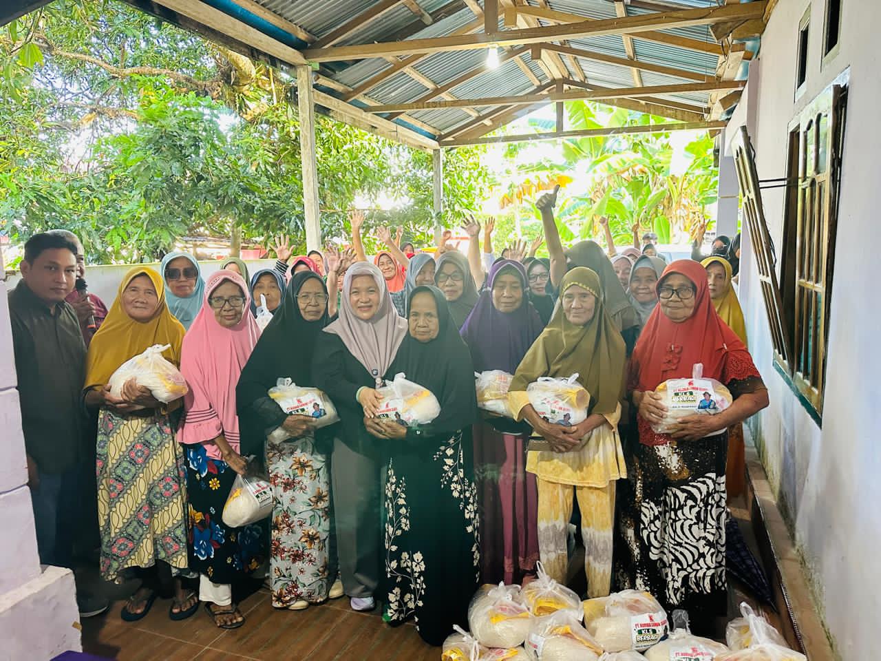 Setelah sambutan, dilanjutkan dengan penyerahan bantuan sembako yang diserahkan langsung oleh CEO PT KLS, Sulianti Murad. Masyarakat begitu antusias dan senang.