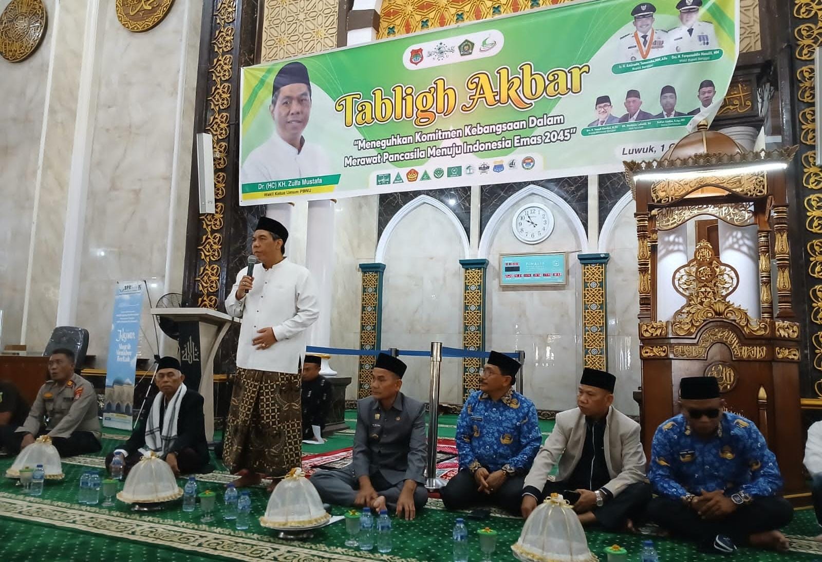 Agenda Tabligh Akbar kali ini menghadirkan penceramah Nasional yang juga Wakil Ketua Umum PB Nahdlatul Ulama Dr.(HC) KH.Zulfa Mustafa. Dengan tema: Meneguhkan Komitmen Kebangsaan Dalam Merawat Pancasila Menuju Indonesia Emas 2045.