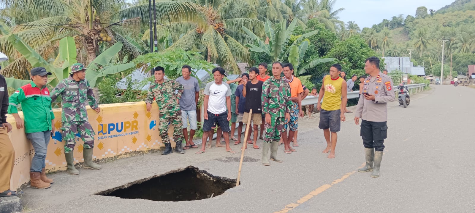 Banggaikece.id- Kondisi jalan berlubang di Trans Palu- Luwuk tepatnya Jembatan Desa Toima Kecamatan Bunta Kabupaten Banggai menjadi perhatian serius karena berpotensi mengganggu keamanan, keselamatan, ketertiban dan kelancaran lalu lintas.