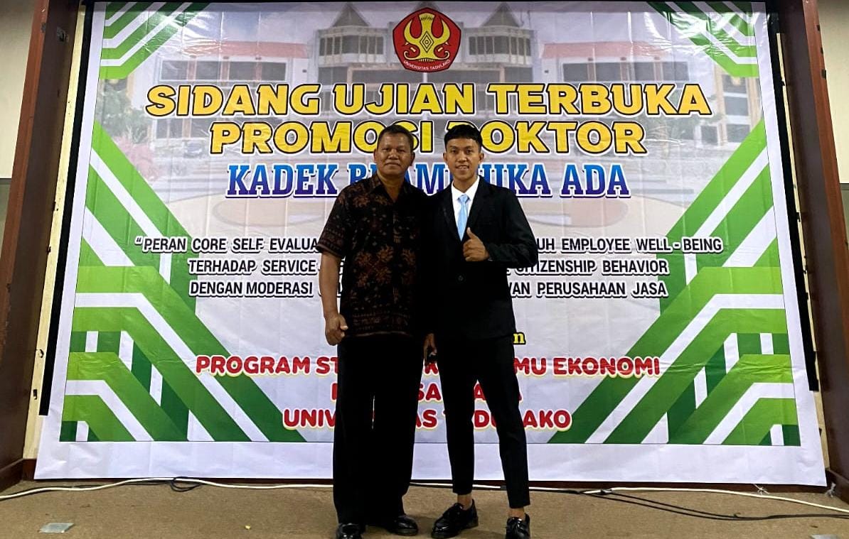 Dalam sidang promosi doktor ini, pria kelahiran Desa Sindang Sari, pada 4 Oktober 1999 itu mengangkat judul ‘Peran Core Self Evaluation dalam Memediasi Pengaruh Employee Well-Being terhadap Service Oriented Organizational Citizenship Behavior dengan Moderasi Collectivist pada Karyawan Perusahaan Jasa di Kota Palu’.