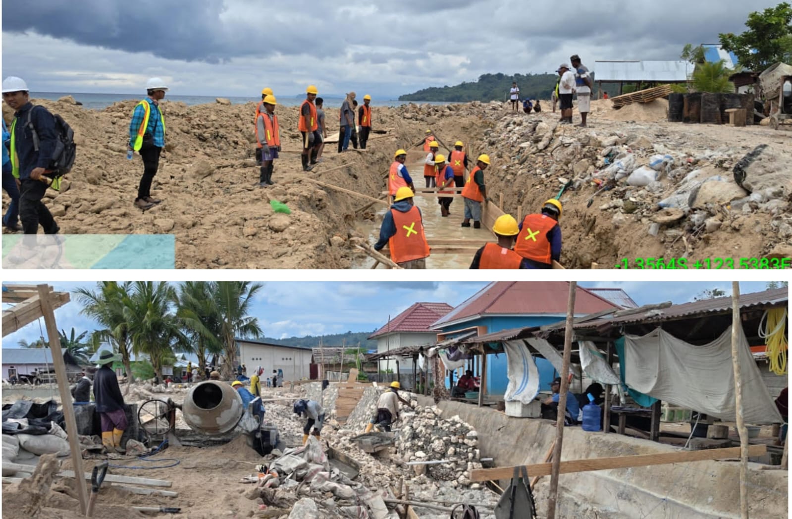 Yarid Bisala merinci capaian pekerjaan Rekonstruksi Pengaman Pasang Surut Desa Kombutokan sebagai berikut: