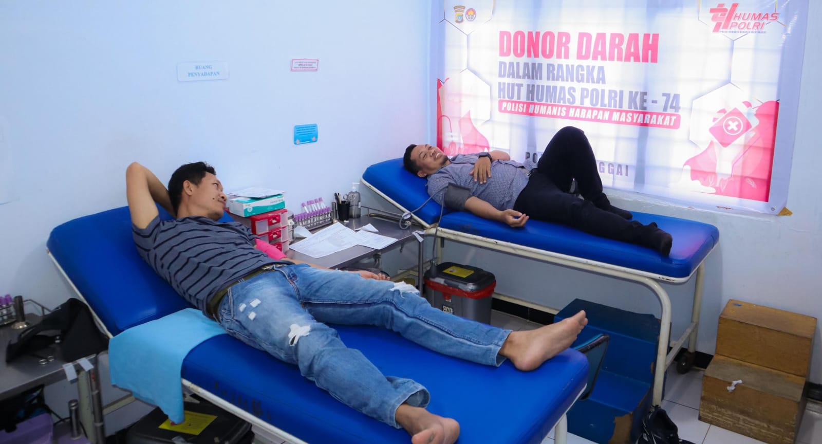 Kegiatan donor darah di ikuti oleh anggota Polres Banggai bersama wartawan. Telah terkumpul kurang lebih 10 kantong darah yang siap disalurkan untuk memenuhi kebutuhan darah di PMI Kabupaten Banggai.