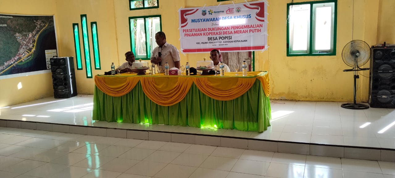 Banggaikece.id – Pemerintah Desa (Pemdes) Popisi, Kecamatan Peling Tengah, Kabupaten Banggai Kepulauan (Bangkep), sukses menggelar Musyawarah Desa (Musdes) Khusus dengan agenda pembahasan dan persetujuan dukungan pengembalian pinjaman Koperasi Desa Merah Putih. Kegiatan ini berlangsung di Balai Pertemuan Rakyat Desa Popisi, Rabu (29/10/2025).