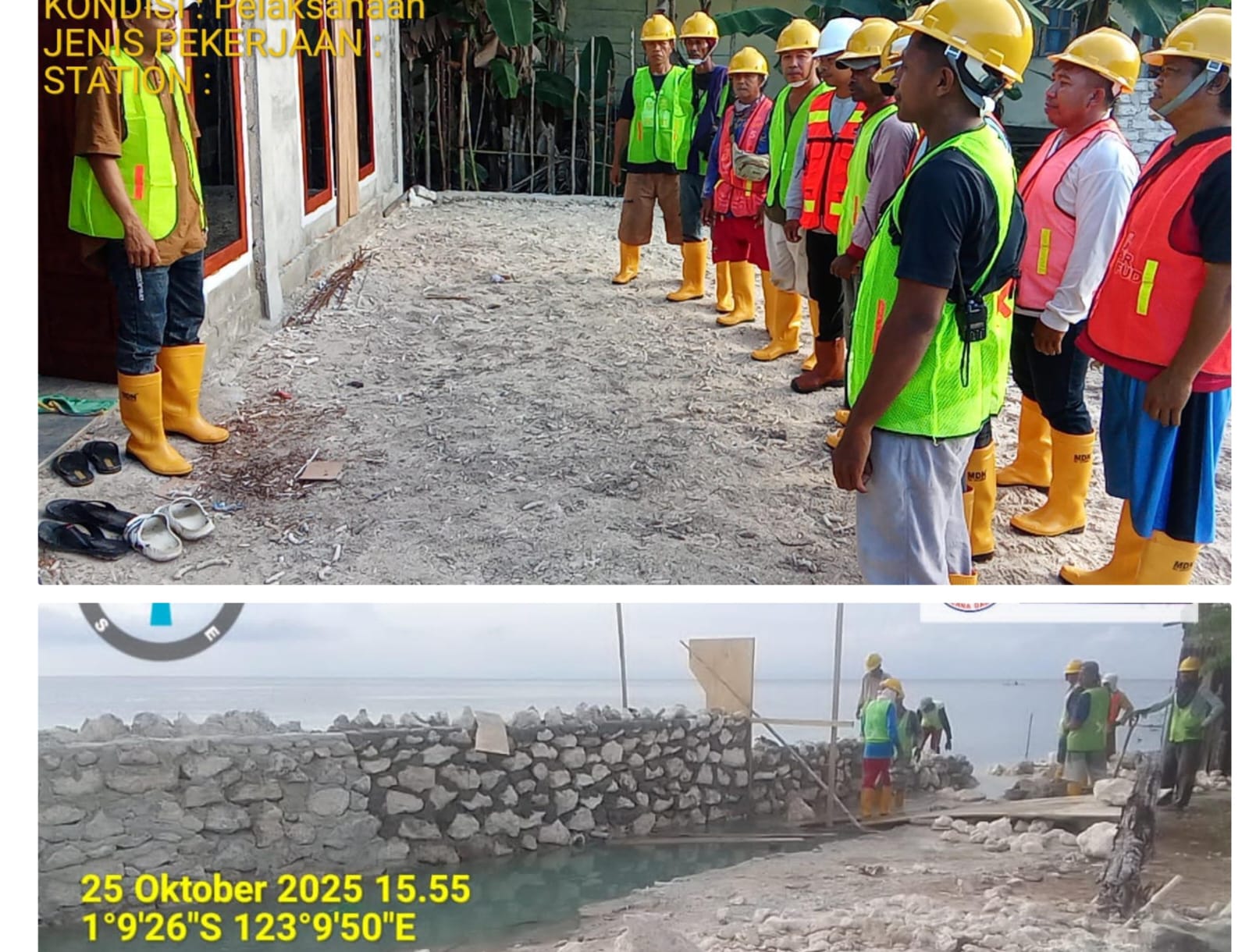 Banggaikece.id – Pekerjaan pembangunan pengaman pasang surut di Desa Bakalinga, Kecamatan Bulagi Utara, Kabupaten Banggai Kepulauan (Bangkep), kini telah mencapai progres sebesar 39,83 persen. Proyek ini bertujuan melindungi wilayah pesisir dari ancaman banjir rob sekaligus menata kawasan pantai agar lebih aman dan tertata bagi masyarakat.