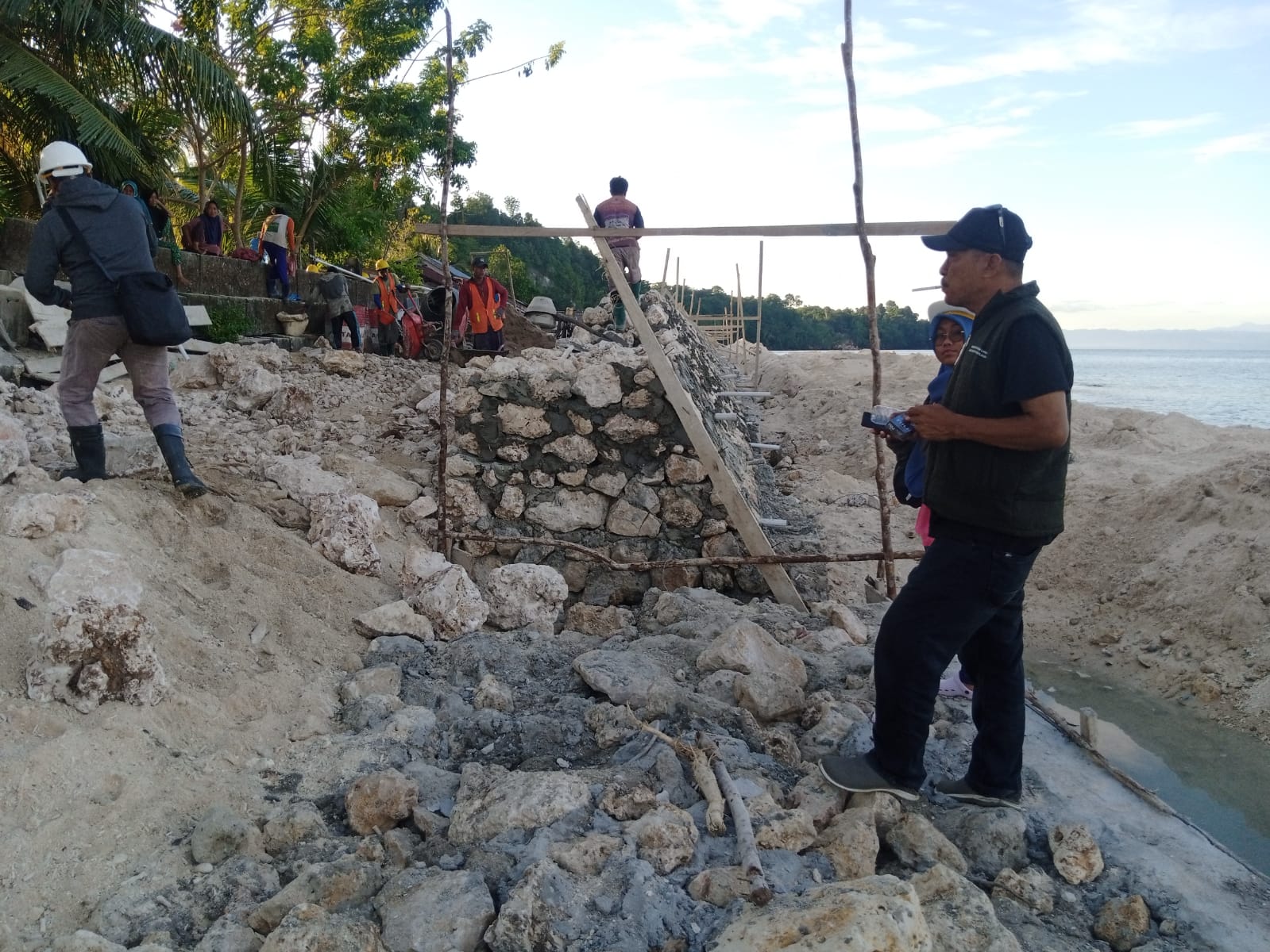 Proyek Rekonstruksi Pengaman Pasang Surut Desa Lalong Capai Progres 38,65 Persen
