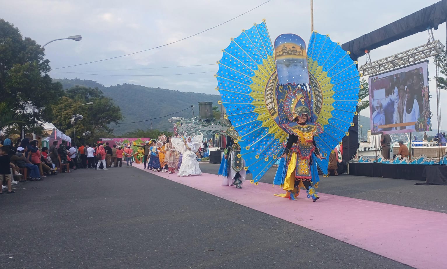Diikuti 24 kecamatan, Parade Kostum Nasional Festival Teluk Lalong ini dibuka secara resmi oleh Wakil Bupati Banggai, Furqanuddin Masulili, Senin sore 3 November 2025.