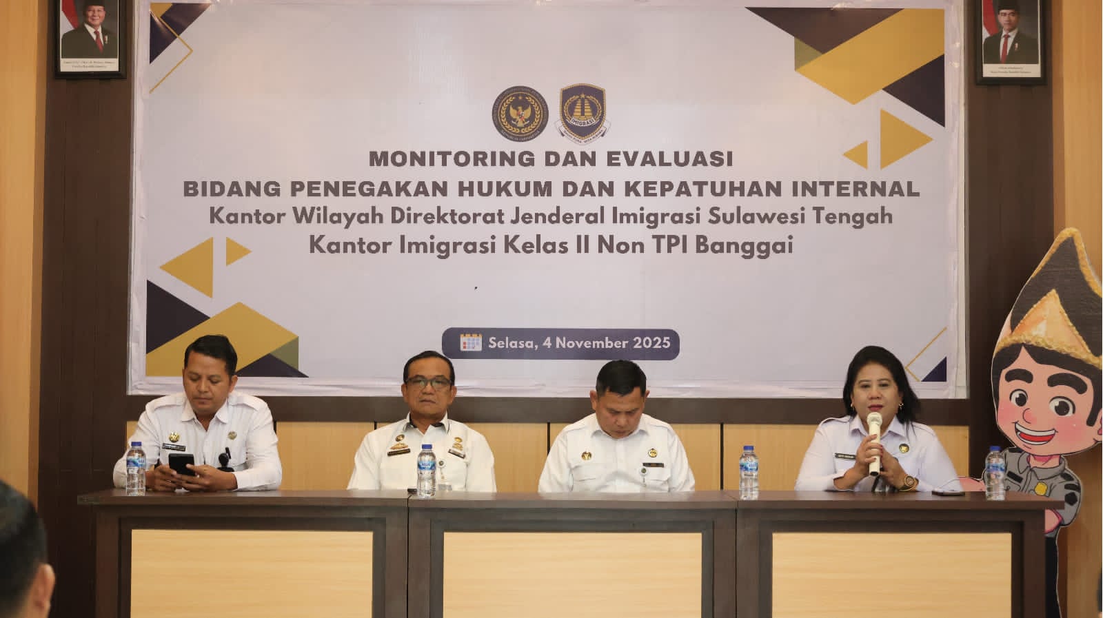 Banggaikece.id – Kantor Wilayah Direktorat Jenderal Imigrasi Sulawesi Tengah melaksanakan kegiatan Penguatan Tugas dan Fungsi (Tusi) Pengawasan Keimigrasian serta Etika Perilaku ASN di lingkungan Kantor Imigrasi Kelas II Non TPI Banggai, Selasa 4 November 2025.