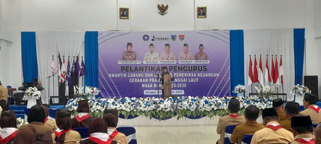 Banggaikece.id – Ketua Kwartir Daerah (Kwarda) Gerakan Pramuka Provinsi Sulawesi Tengah (Sulteng), Hj. Vera Rompas Mastura, secara resmi melantik Pengurus Kwartir Cabang (Kwarcab) Gerakan Pramuka Kabupaten Banggai Laut (Balut) pada Selasa (4/11/2025).