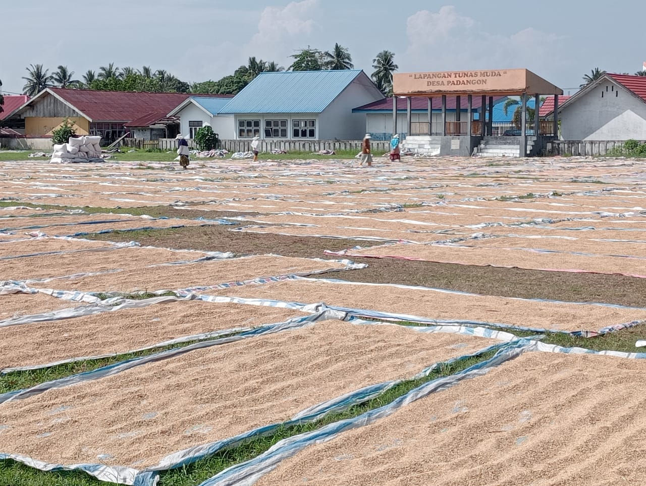 Saking melimpahnya hasil panen, warga kesulitan mencari tempat untuk menjemur padi. Akhirnya, lapangan Tunas Muda Desa Padangon pun disulap menjadi tempat penjemuran padi oleh warga.