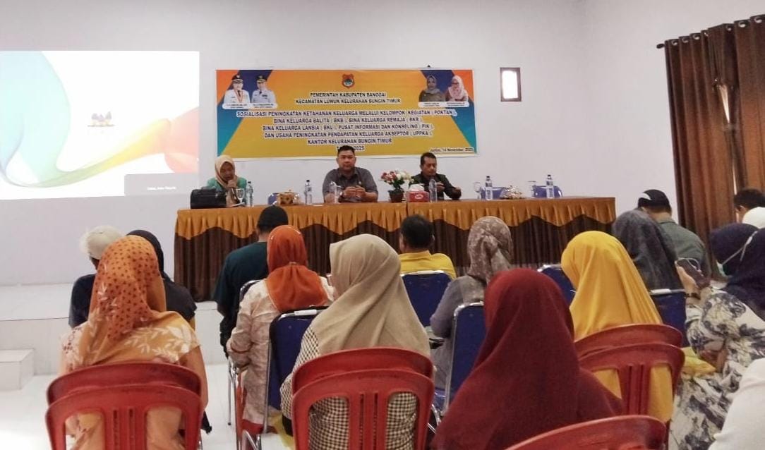 Banggaikece.id – Pemerintah Kelurahan Bungin Timur, Kecamatan Luwuk, menggelar Sosialisasi Peningkatan Ketahanan Keluarga melalui Kelompok Kegiatan (Poktan) meliputi Bina Keluarga Balita (BKB), Bina Keluarga Remaja (BKR), Bina Keluarga Lansia (BKL), Pusat Informasi dan Konseling Remaja (PIK-R), serta Usaha Peningkatan Pendapatan Keluarga Akseptor (UPPKA), pada Jumat, 14 November 2025.