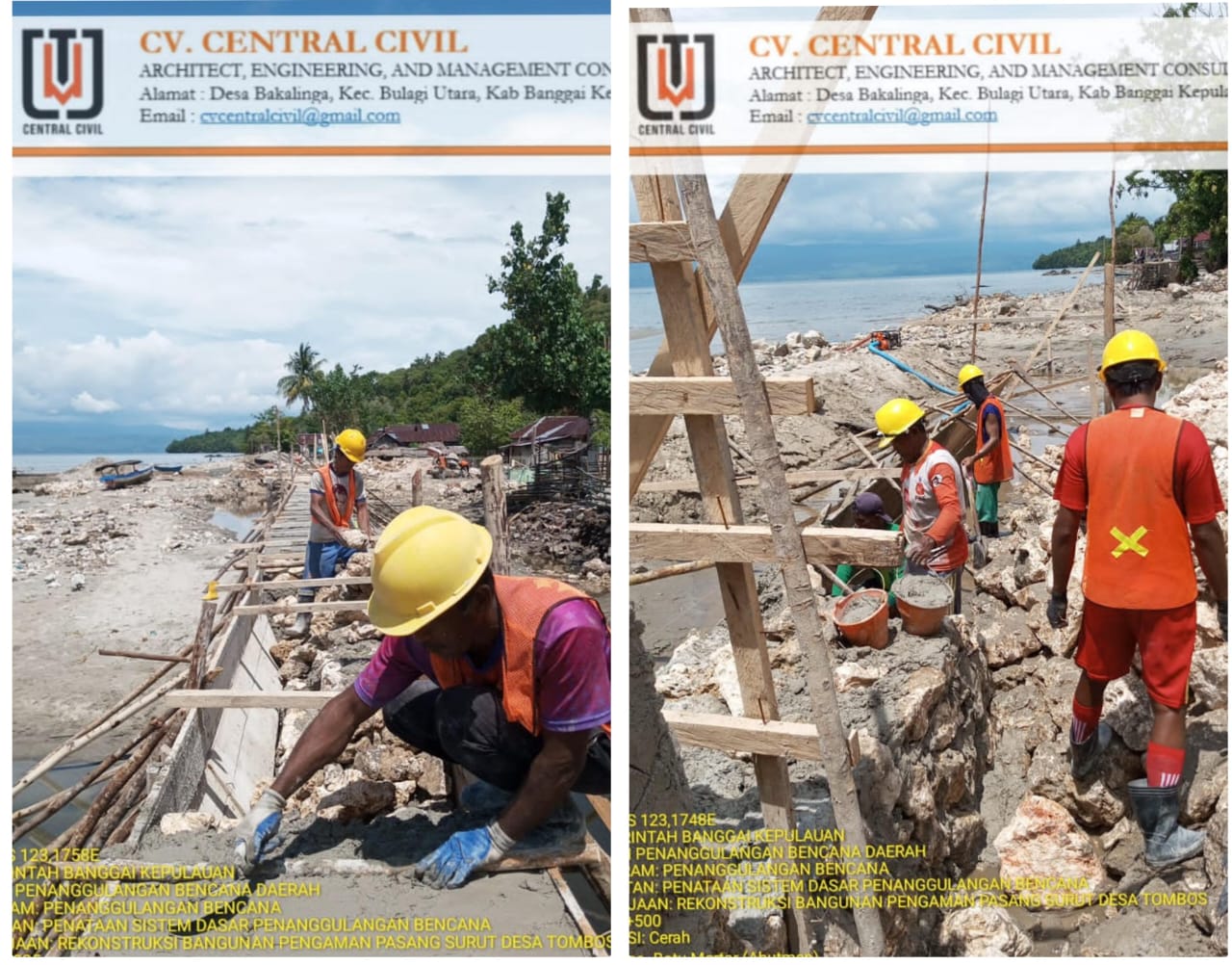 Konsultan pengawas dari CV Central Civil, Hambali Yonde, ST, pada Kamis (13/11/2025), menjelaskan bahwa berdasarkan hasil analisis pelaksana dan konsultan, progres fisik rekonstruksi bangunan pengaman pasang surut yang dikerjakan oleh CV Banggai Cemerlang menunjukkan capaian 52,35 persen, dari target atau rencana 76,02 persen hingga minggu kedua November 2025.