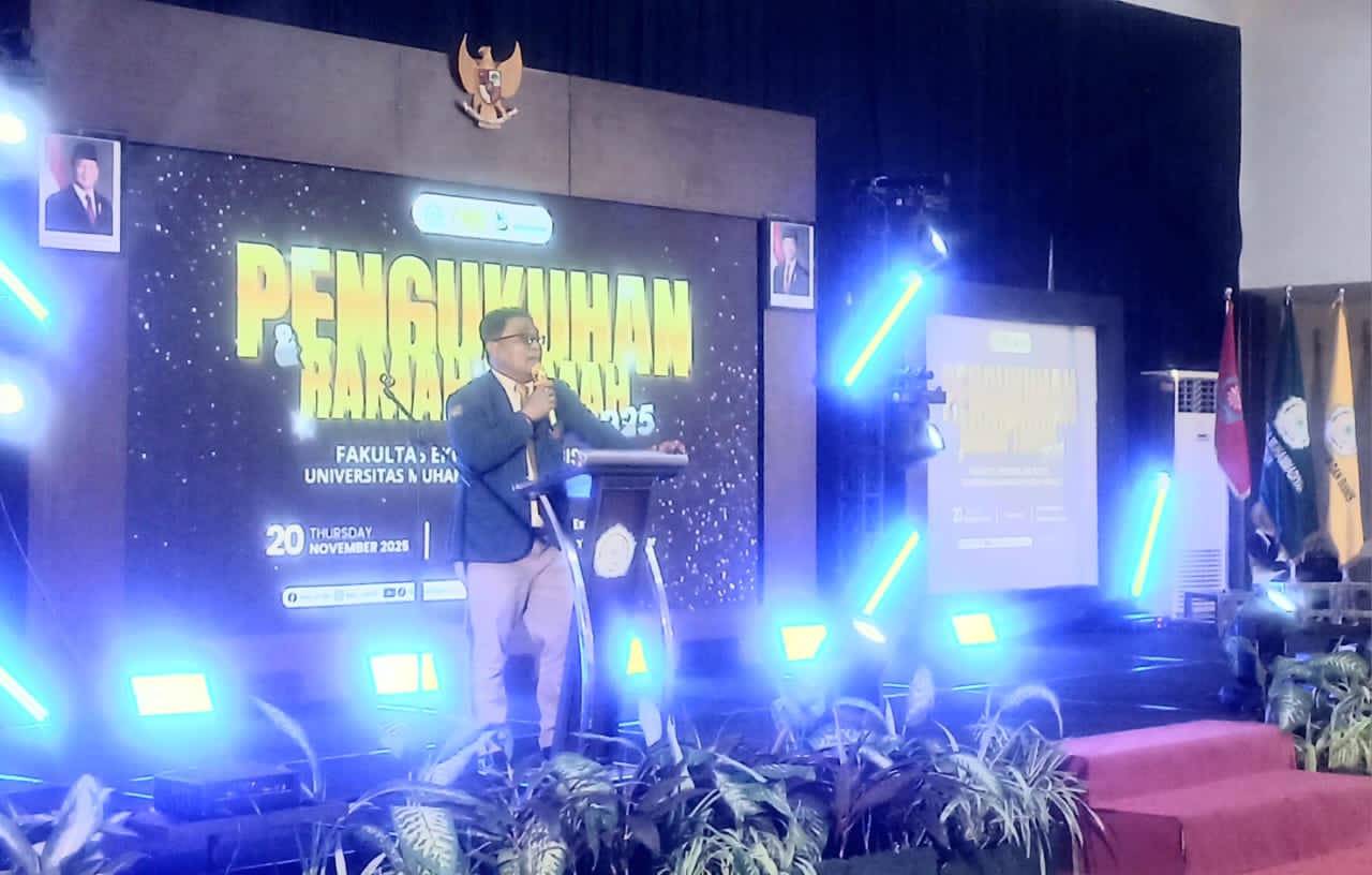 “Saya Dekan Fakultas Ekonomi dan Bisnis dengan resmi mengukukuhkan saudara saudari sebagaimana terlampir dalam surat keputusan dekan,” ucap Dekan Dr. Wahyudin Rahman.