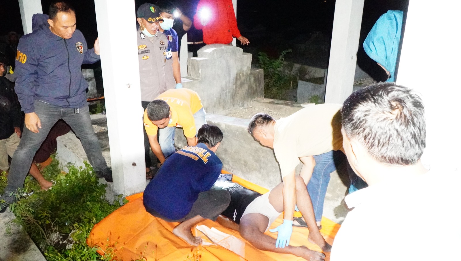 Banggaikece.id- Polisi melakukan olah TKP penemuan jenazah pria gantung diri di kompleks Pekuburan Cina, Jalan P. Kalimantan, Kelurahan Kompo, Luwuk Selatan, Senin (24/11/2025) malam.