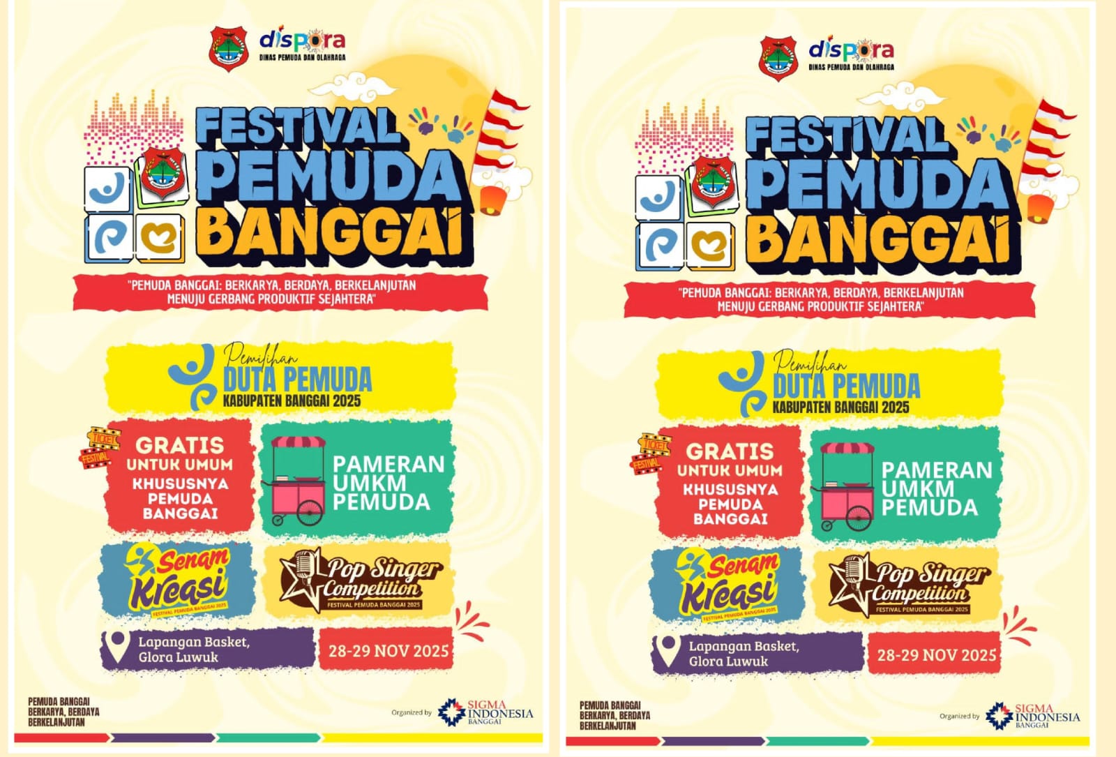 Sebagai penyelenggara, SIGMA Indonesia Banggai menegaskan bahwa Festival Pemuda Banggai bukan sekadar hiburan, tetapi gerakan nyata untuk mendorong anak muda agar lebih percaya diri, berdaya saing, dan terus menghasilkan karya yang berdampak bagi daerah.