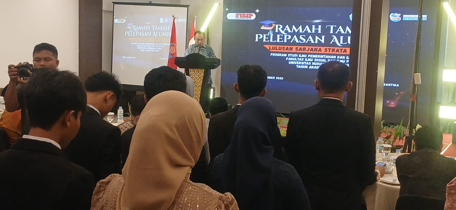 Banggaikece.id- Fakultas Ilmu Sosial dan Ilmu Politik (FISIP) Universitas Muhammadiyah (Unismuh) Luwuk menggelar Ramah Tamah dan Pelepasan Alumni, Sabtu malam 29 November 2025 di Hotel Santika Luwuk.
