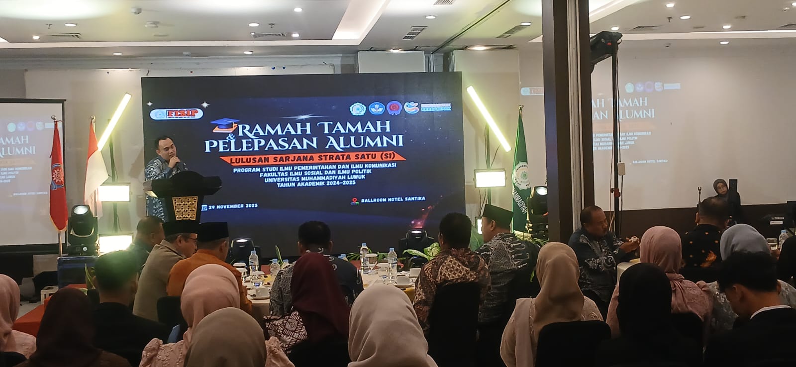 Banggaikece.id- Fakultas Ilmu Sosial dan Ilmu Politik (FISIP) Universitas Muhammadiyah (Unismuh) Luwuk menggelar Ramah Tamah dan Pelepasan Alumni, Sabtu malam 29 November 2025 di Hotel Santika Luwuk.