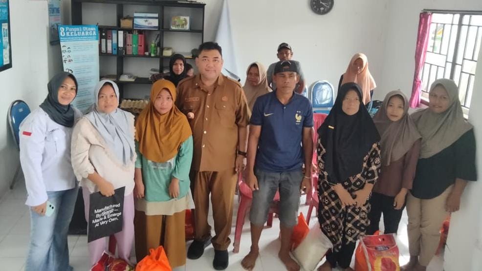 BANGGAI KECE — Giliran Kecamatan Nambo, Kepala Dinas Pengendalian Penduduk, Keluarga Berencana, Pemberdayaan Perempuan dan Perlindungan Anak (P2KBP3A) Banggai, Faisal Karim, S.Sos., M.Si., menyalurkan bantuan untuk Keluarga Risiko Stunting (KRS), Senin 8 Desember 2025.