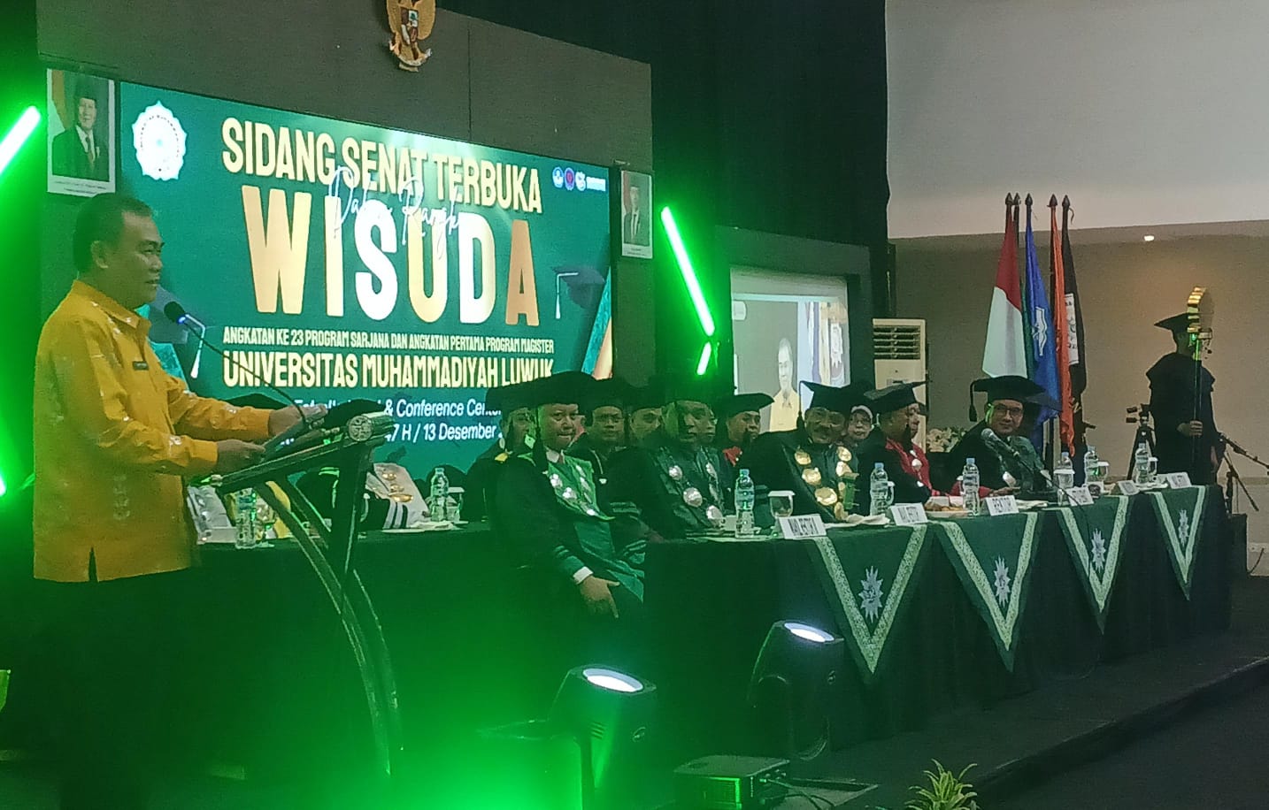 Apresiasi tersebut disampaikan melalui sambutan tertulis Bupati yang dibacakan oleh Sekretaris Daerah Kabupaten Banggai, Ir. Moh. Ramli Tongko, pada Wisuda Unismuh Luwuk Angkatan XXIII, yang digelar di Hotel Estrella Luwuk, Sabtu (13/12/2025).