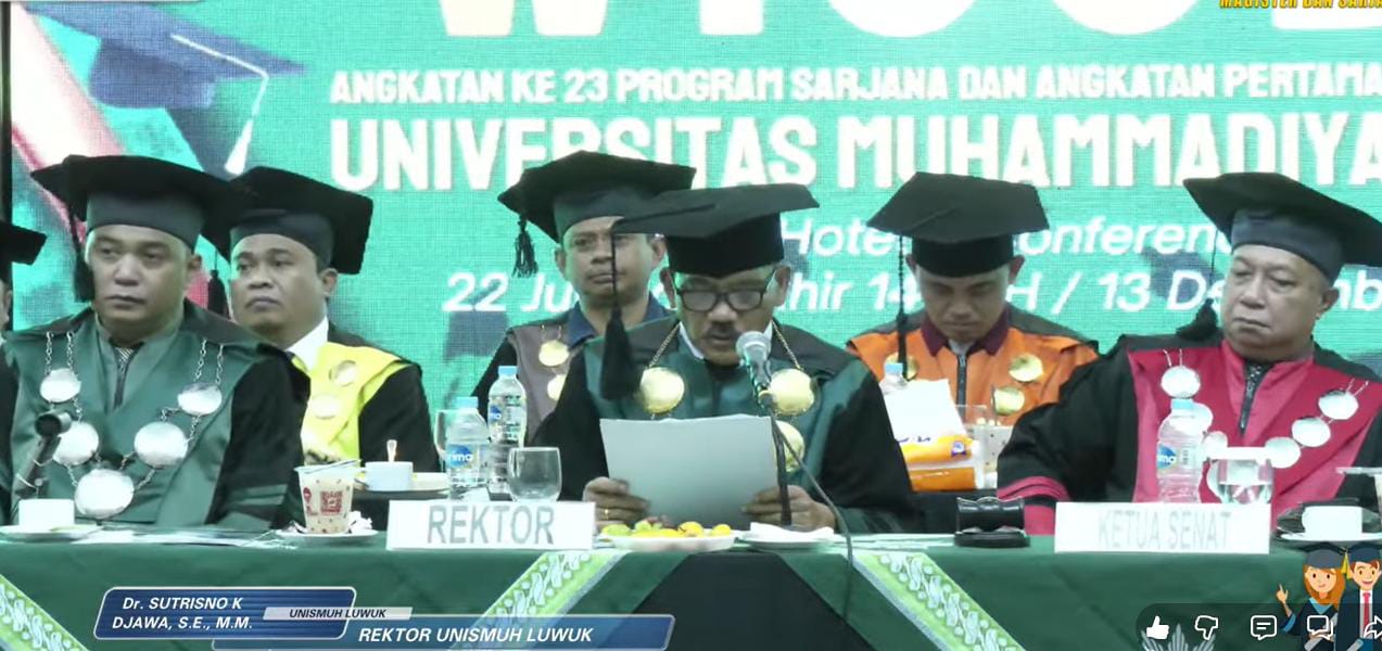 “Jumlah mahasiswa aktif saat ini sebanyak 4.839 mahasiswa yang tersebar di 7 Fakultas dengan 16 Program S1 dan 3 Program Studi S2,” ujar Rektor Unismuh Luwuk, Dr. Sutrisno K Djawa memaparkan capaian akademik dalam acara Wisuda Angkatan XXIII, Sabtu 13 Desember 2025 di Hotel Estrella Luwuk.