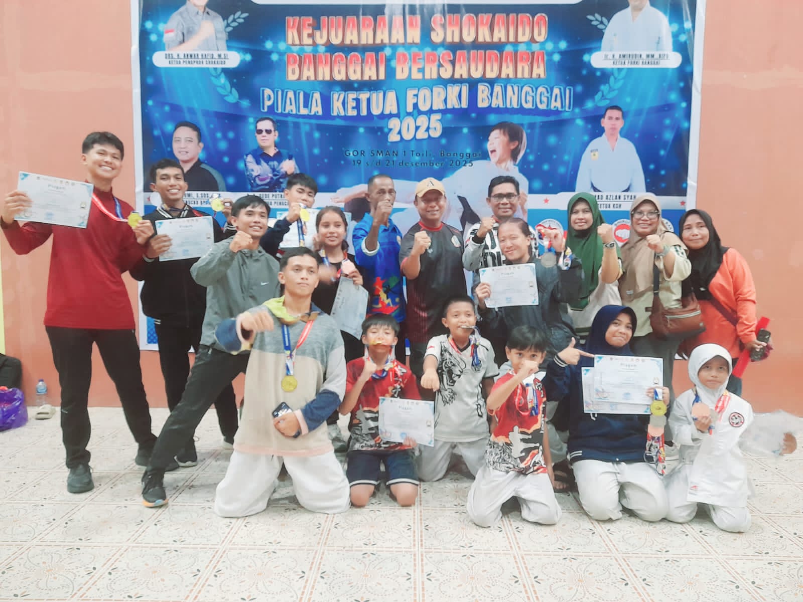 Banggaikece.id – Kontingen INKANAS Banggai Kepulauan kembali menorehkan prestasi membanggakan pada Kejuaraan Shokaido Karate Banggai Bersaudara Piala Ketua FORKI Banggai Tahun 2025 yang digelar di Aula SMAN 1 Toili, Kabupaten Banggai, pada 19–21 Desember 2025.