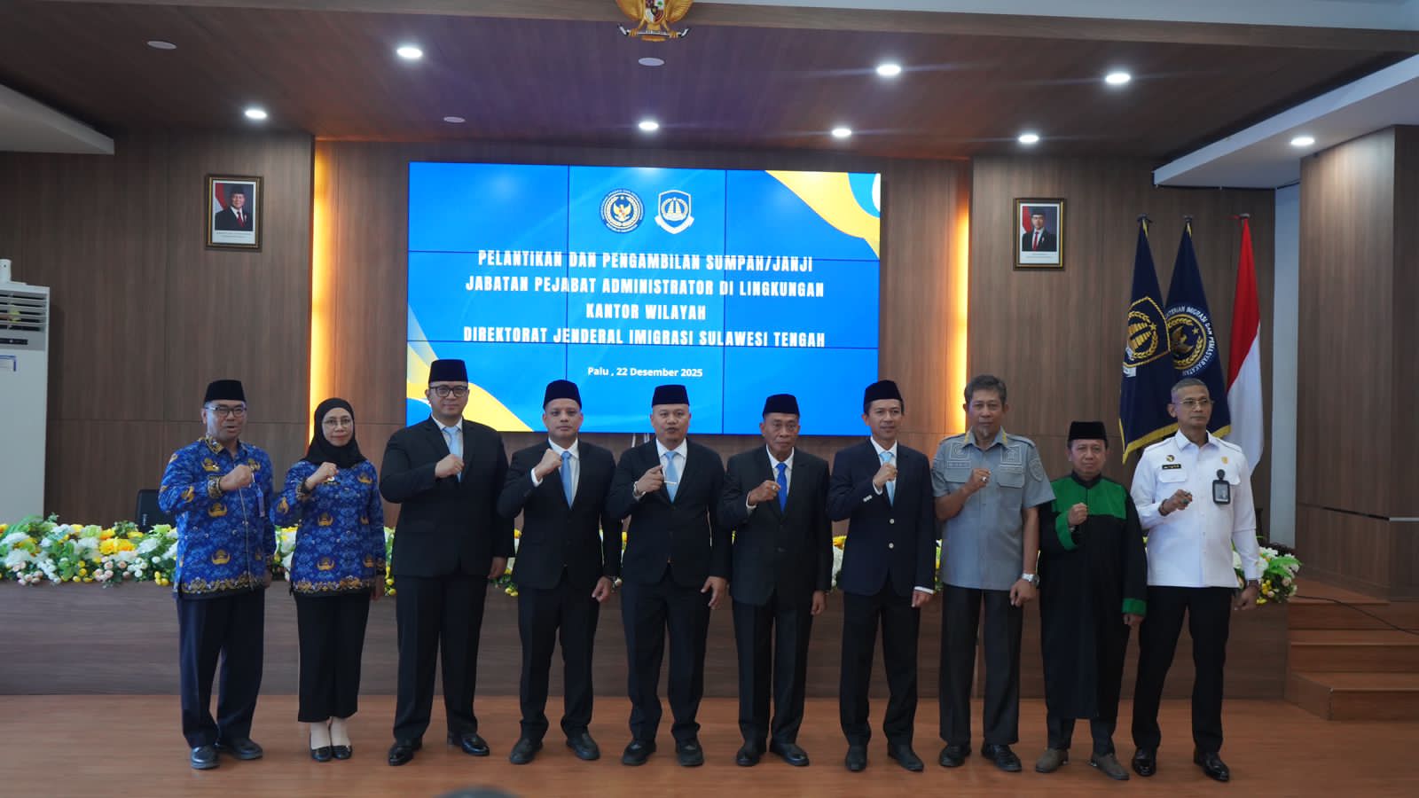 BANGGAI KECE- — Kepala Kantor Wilayah Direktorat Jenderal Imigrasi Sulawesi Tengah, Arief Hazairin Satoto, secara resmi melantik dan mengambil sumpah jabatan Kepala Unit Pelaksana Teknis (UPT) Keimigrasian serta Pejabat Administrator di lingkungan Kantor Wilayah Direktorat Jenderal Imigrasi Sulawesi Tengah, Senin 22 Desember 2025.