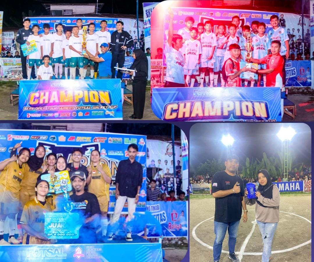 Banggaikece.id – Semi Open Turnamen Futsal U-13 dan Women Wilket Cup 2025 yang diselenggarakan oleh Pemuda Wilayah Kehutanan (Wilket), Kelurahan Mangkio, resmi berakhir. Penutupan turnamen tersebut dilakukan langsung oleh Anggota DPRD Provinsi dari Partai Demokrat, H. Samiun L. Agi.