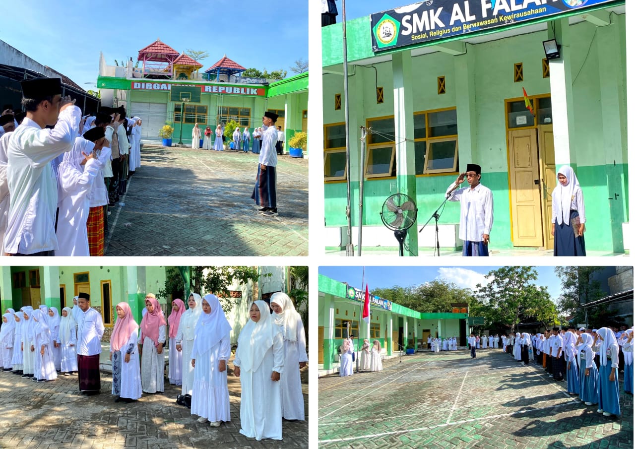 Dalam pelaksanaan upacara, siswa-siswi SMK Al-Falah dipercaya sebagai petugas upacara. Sementara itu, pasukan pengibar bendera (Paskibraka) dipercayakan kepada siswi-siswi SMP Al-Falah, dan paduan suara dibawakan oleh siswi-siswi SD Al-Falah yang turut menambah kekhidmatan suasana upacara.