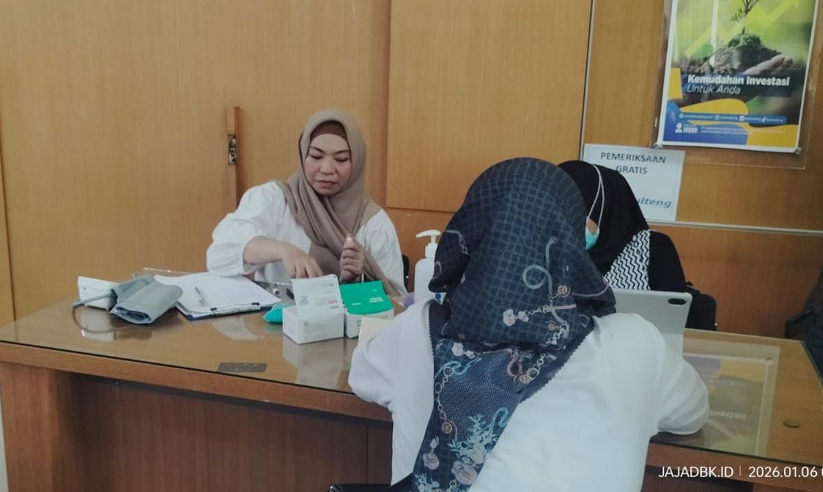 Seperti yang terlihat pada Selasa, 6 Januari 2026, puluhan nasabah tampak antusias mengikuti pemeriksaan kesehatan gratis yang disediakan Bank Sulteng.