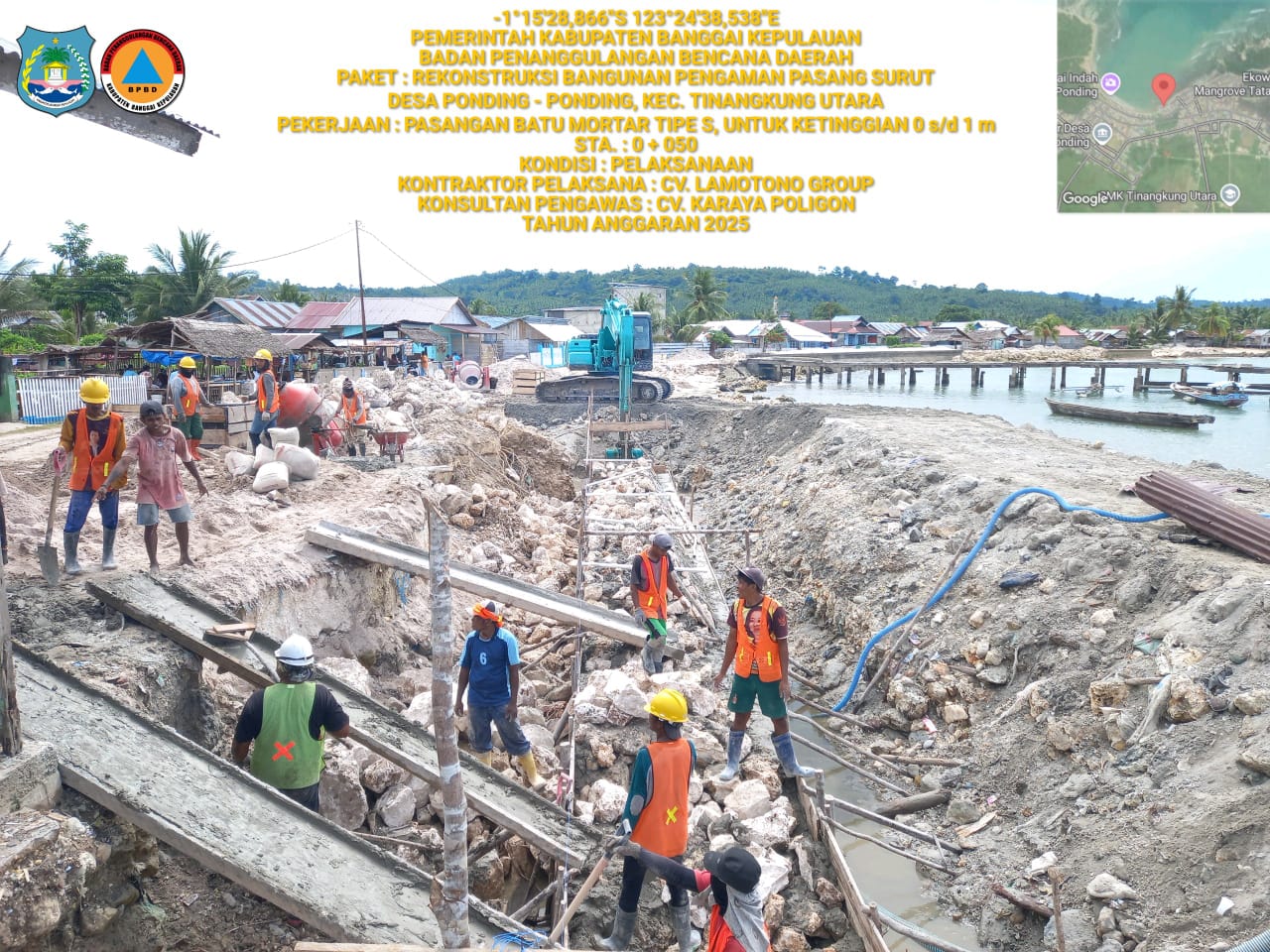 Rekonstruksi bangunan pengaman pasang surut Desa Ponding-Ponding, Kecamatan Tinangkung Utara, oleh CV Lamotono.