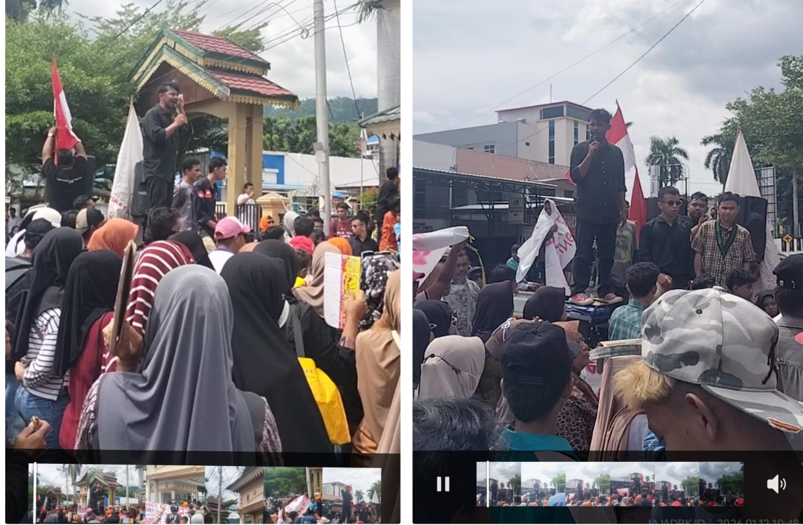 BANGGAI KECE- Ratusan warga Tanjung Sari, Kelurahan Karaton, Kecamatan Luwuk, melakukan aksi unjuk rasa di Kantor Pengadilan Negeri (PN) Luwuk, Senin 12 Januari 2026.
