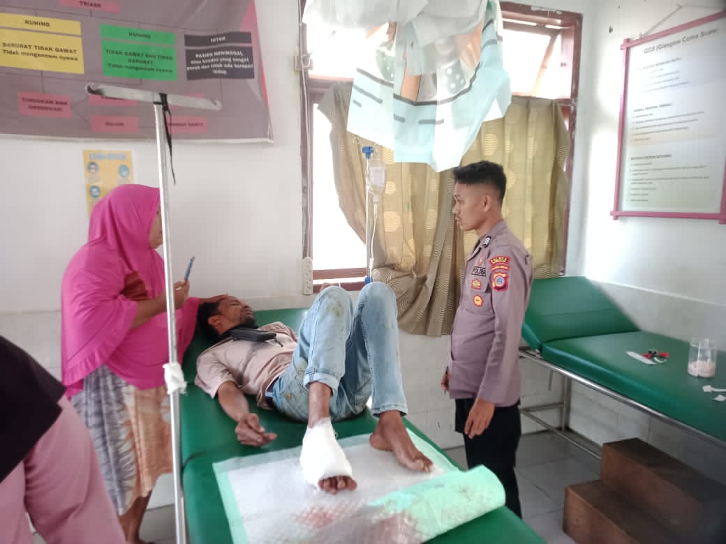 Pengendara Yamaha Vixion mengalami sakit di bagian pinggang dan bengkak ditangan sebelah kanan. Sehingga harus dirawat di Puskesmas Bualemo.