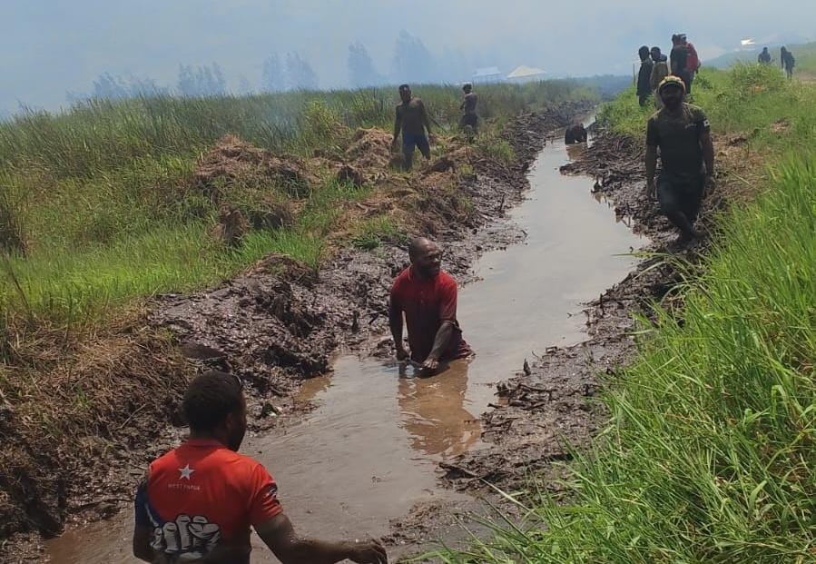 BANGGAI KECE- MOMAGEIDA, PAPUA TENGAH – Menjelang pelaksanaan Musyawarah Pastoral Semesta (MUSPASME) ke-VIII, semangat kebersamaan warga Kampung Momageida, Distrik Topiyai, Kabupaten Paniai, Papua Tengah, patut diapresiasi. Warga setempat bersama pemuda melakukan perbaikan badan jalan dan saluran air (drainase) pada ruas jalan trans yang menghubungkan Kampung Momageitapa menuju Kampung Baguwo, Selasa (17/12/2025) sekitar pukul 14.45 WIT.