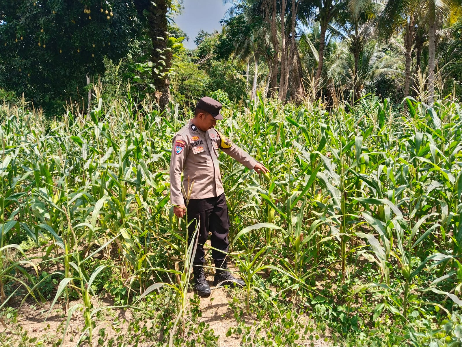 Bhabinkamtibmas Polsek Totikum Pantau Lahan Jagung Bumdes Desa Tone, Dukung Ketahanan Pangan Bangkep