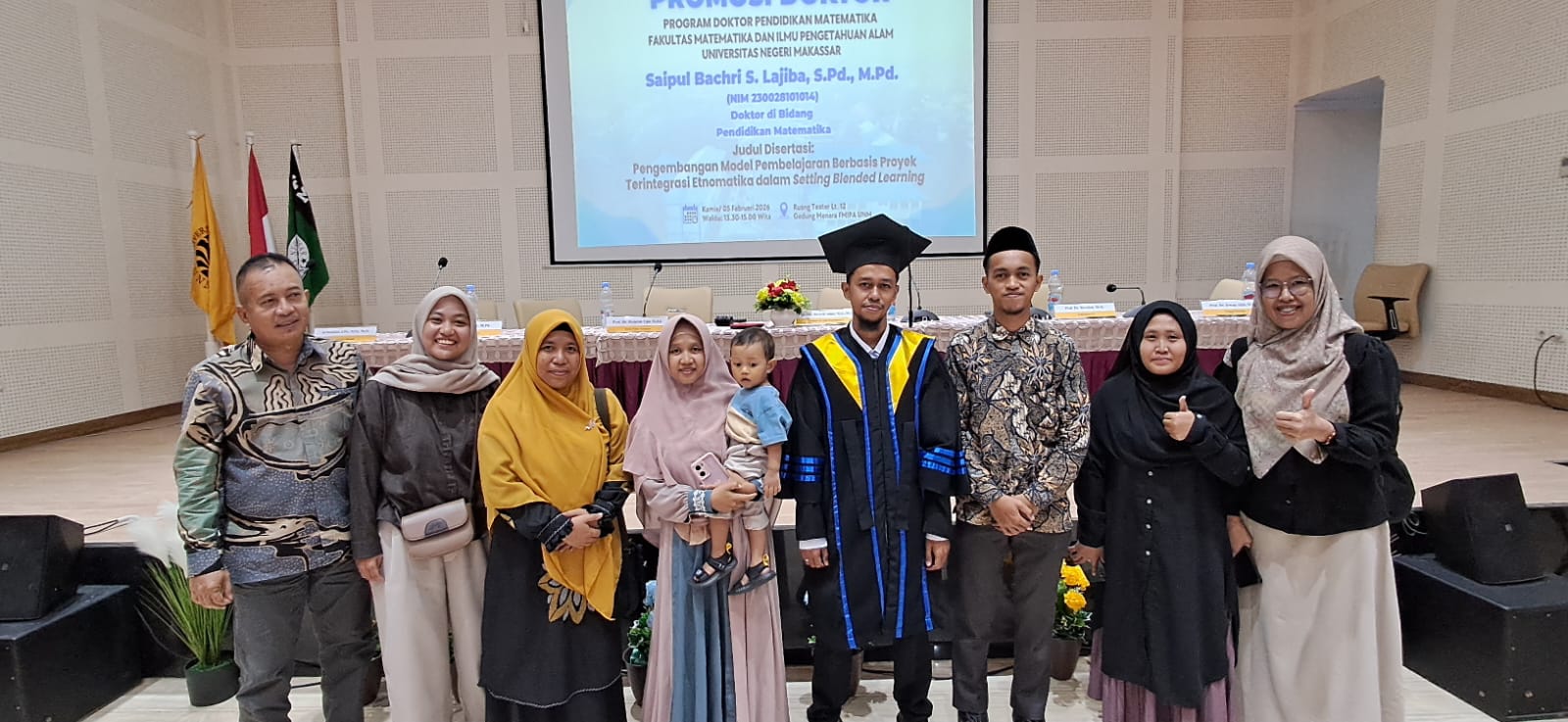 Dalam sidang promosi doktor bidang Pendidikan Matematika tersebut, Saipul mengangkat judul disertasi “Pengembangan Model Pembelajaran Berbasis Proyek Terintegrasi Etnomatika dalam Setting Blended Learning.”