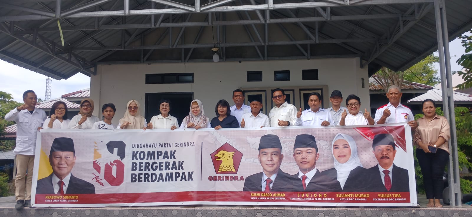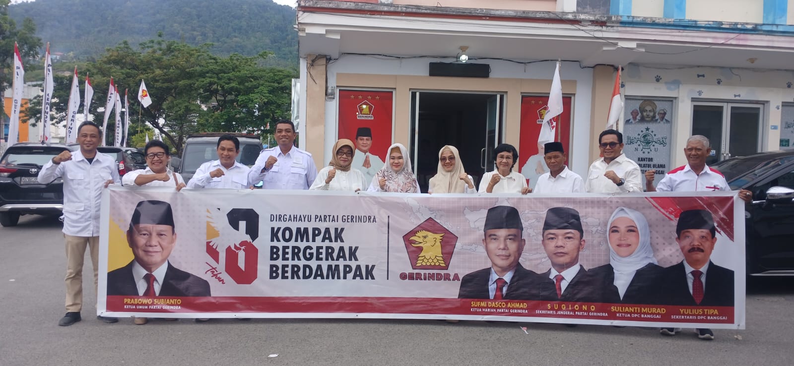 Turut hadir dalam rombongan, seluruh Anggota DPRD Fraksi Gerindra Banggai, di antaranya Masnawati Muhammad, Herdiyanto Djiada, Lutfi Samaduri, Suwardi Agis, dan Naim Saleh, bersama jajaran pengurus serta kader Partai Gerindra Banggai.