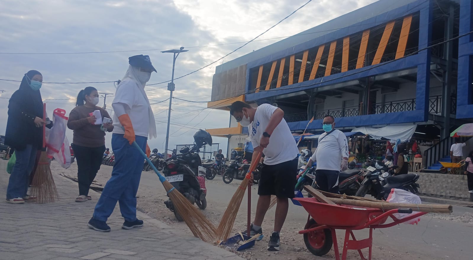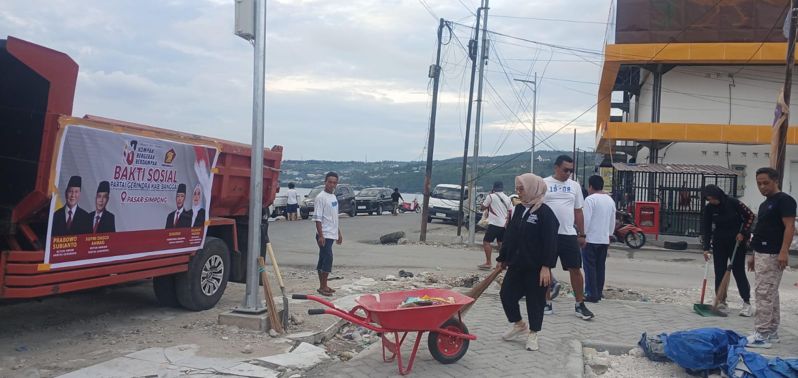 Kegiatan bakti sosial bersih-bersih di area Pasar Simpong Luwuk dan pesisir pantai, dipimpin langsung oleh Wakil Ketua DPC Gerindra, Wardani Murad Husain.