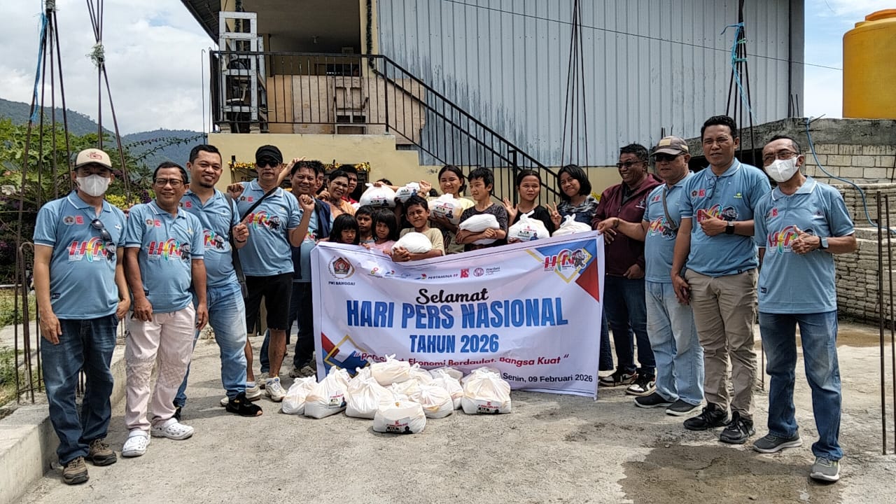 BANGGAI KECE – Dalam rangka menyambut Hari Pers Nasional (HPN) 2026, Persatuan Wartawan Indonesia (PWI) Kabupaten Banggai bekerja sama dengan Kurnia Luwuk Sejati (KLS) menggelar kegiatan sosial berupa pembagian sembako ke sejumlah panti asuhan, Sabtu, 7 Februari 2026.