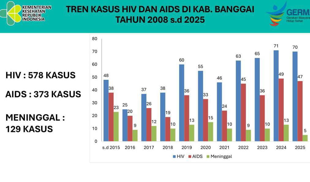 Banggai Kece – Tren kasus HIV dan AIDS di Kabupaten Banggai menunjukkan peningkatan signifikan hingga tahun 2025.