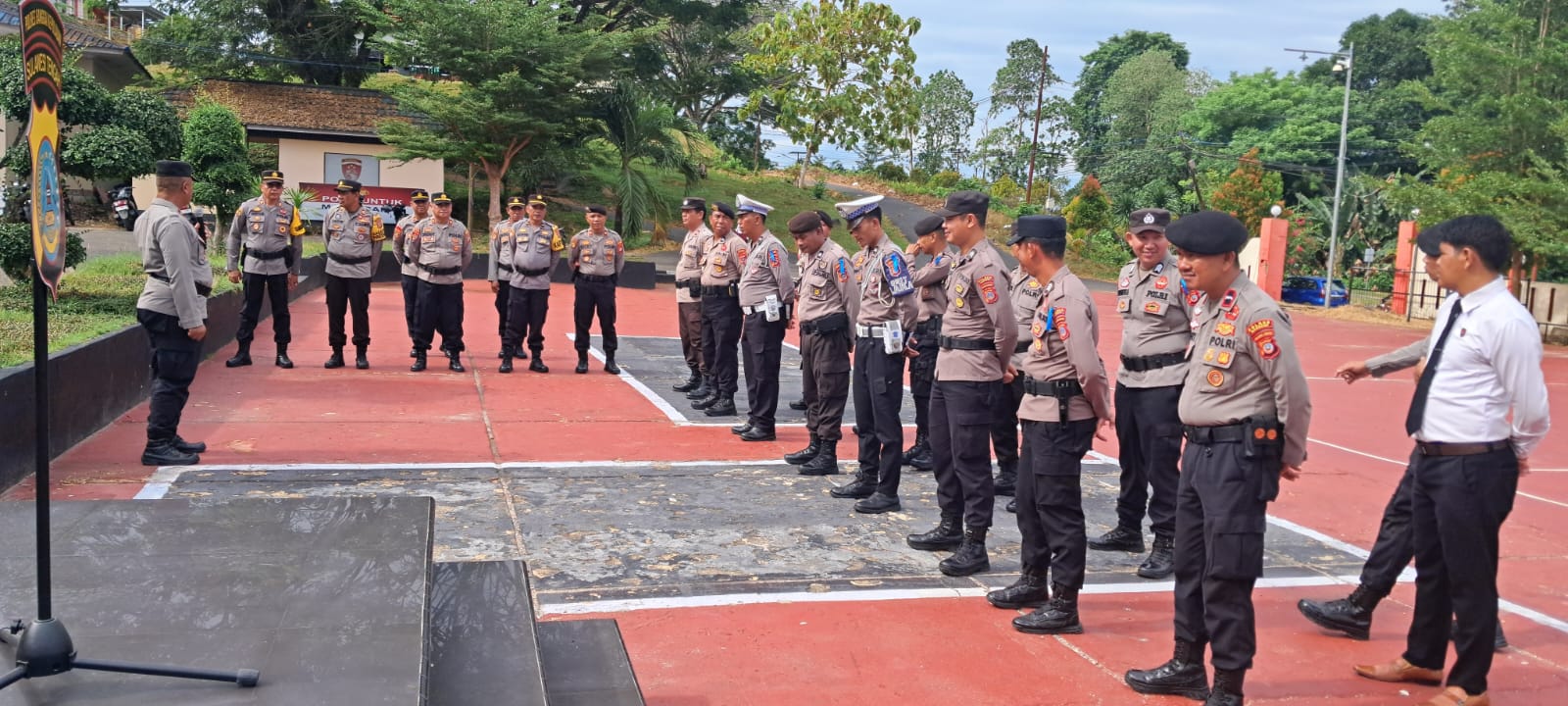 Bertindak selaku pengambil apel, Wakapolres Bangkep Kompol Maikun, S.H., M.H., yang juga menjabat sebagai KarendalOps, memberikan arahan langsung kepada puluhan personel.