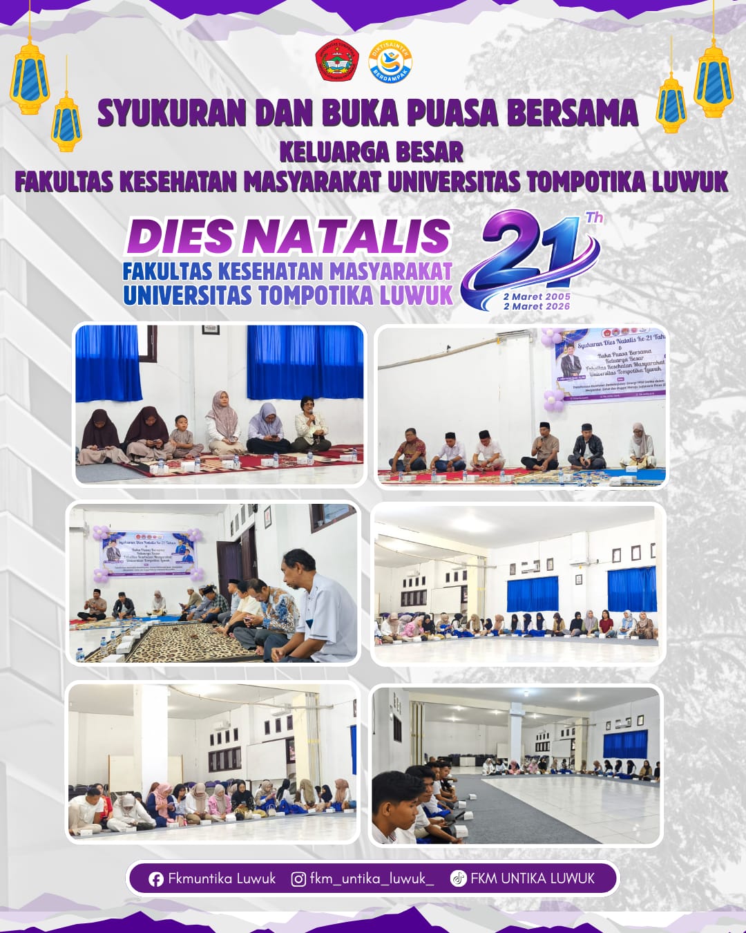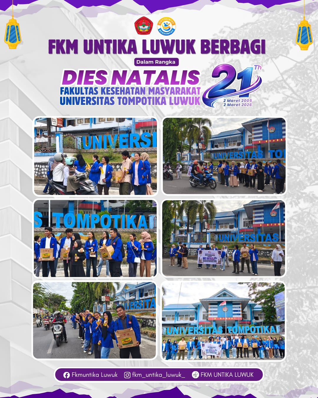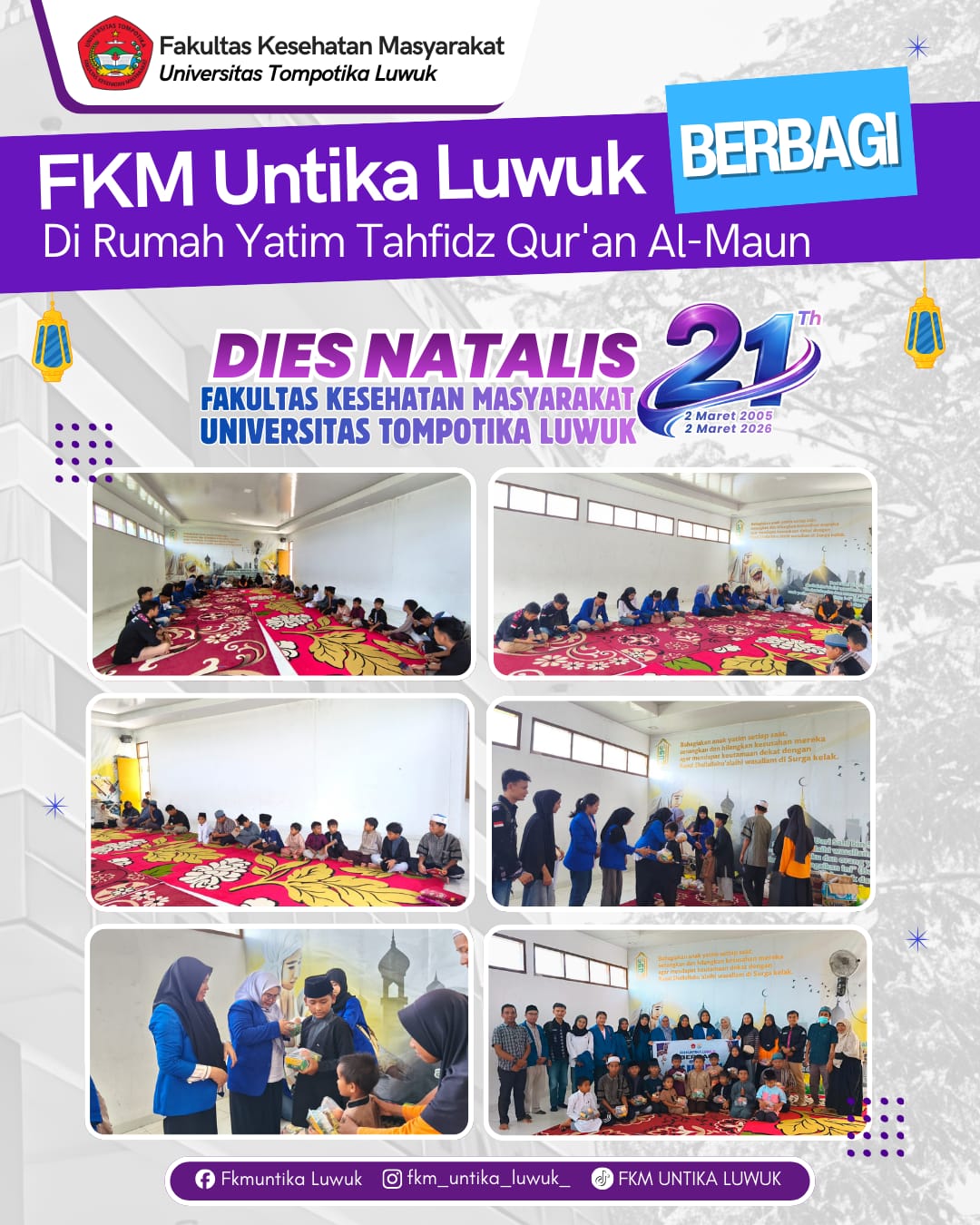 Kegiatan Dies Natalis ke-21 FKM Untika Luwuk ini diketuai oleh Dr. Bambang Dwi Cahya, SKM., M.Kes., yang bersama panitia dan mahasiswa telah mempersiapkan seluruh rangkaian acara, mulai dari aksi sosial hingga buka puasa bersama.